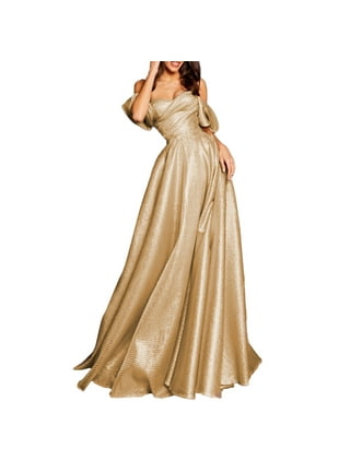 Long Gold Satin Prom Dresses V Neck Off The Shoulder Formal Gowns Alinanova